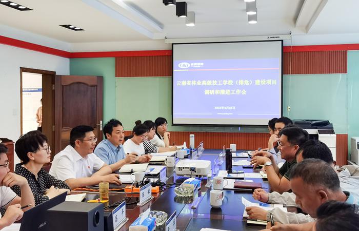 4月25日下午,云南省林業(yè)高級技工學校黨委副書記、校長張沖平,黨委書記溫紹龍一行到公司五〇五直管部調(diào)研,公司黨委副書記、副董事長、總經(jīng)理付雋蒼熱情接待來訪客人,雙方就云南省林業(yè)高級技工學校(排危)項目的推進深入交流座談。