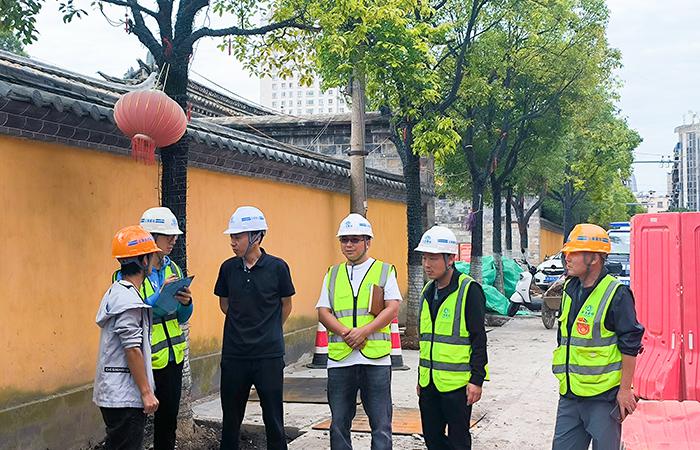 楊永指出,該項(xiàng)目位于城區(qū)中心,施工工期緊張,安全文明施工要求高,商鋪、居民、游客及過(guò)往車(chē)輛密集,地下交叉管線(xiàn)眾多,要針對(duì)項(xiàng)目實(shí)際情況,做好臨邊洞口、溝槽及基坑防護(hù),設(shè)置警示警戒標(biāo)識(shí)標(biāo)牌,防止行人及車(chē)輛跌落、摔倒。各施工段要加強(qiáng)保通意識(shí),提高保通效率,確保道路暢通、保證施工時(shí)段行人及車(chē)輛通行安全。施工過(guò)程中要采取可靠措施,減少噪音及揚(yáng)塵污染。