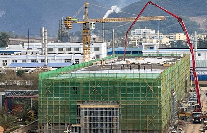 12月26日下午,由公司第十一直管項(xiàng)目部負(fù)責(zé)施工的貴金屬二次資源富集再生現(xiàn)代產(chǎn)業(yè)基地項(xiàng)目(二期)工程,庫(kù)房主體結(jié)構(gòu)順利封頂。