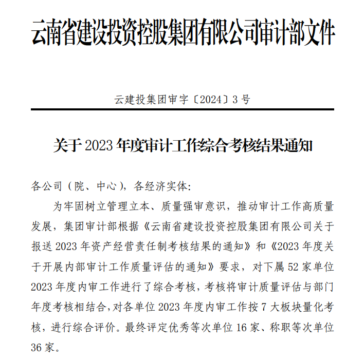 技術支持: 方森科技近日,集團審計部發(fā)布了《關于2023年度審計工作綜合考核結果通知》,考核將審計質(zhì)量評估與部門年度考核相結合,公司獲評“優(yōu)秀”等次。