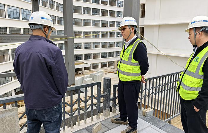 付雋蒼查看現(xiàn)場(chǎng)情況并詳細(xì)了解項(xiàng)目進(jìn)度,對(duì)施工現(xiàn)場(chǎng)的質(zhì)量、進(jìn)度、安全及成本管控工作提出要求。
