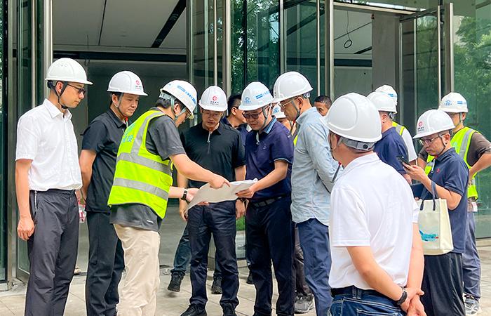 李軍一行深入項(xiàng)目現(xiàn)場(chǎng),通過(guò)查閱施工圖紙、實(shí)地查看辦公樓功能布局及使用效果,全面了解施工組織及現(xiàn)場(chǎng)管理情況,對(duì)項(xiàng)目當(dāng)前的進(jìn)度推進(jìn)和質(zhì)量管理成效表示肯定。