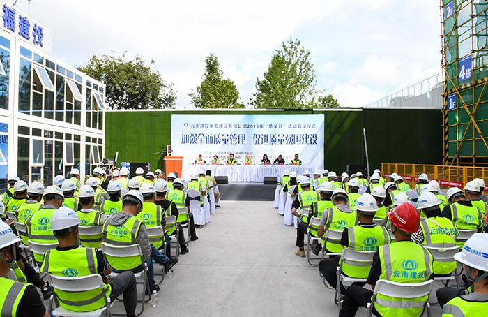 9月4日上午,公司2025年“質(zhì)量月”活動(dòng)啟動(dòng)儀式在第七直管部負(fù)責(zé)施工的五華區(qū)數(shù)字經(jīng)濟(jì)產(chǎn)業(yè)園西北新城園區(qū)項(xiàng)目舉行。本次“質(zhì)量月”以“加強(qiáng)全面質(zhì)量管理 促進(jìn)質(zhì)量強(qiáng)國(guó)建設(shè)”為主題,昆明市建筑業(yè)協(xié)會(huì)會(huì)長(zhǎng)張?jiān)浦?/span>,五華區(qū)建設(shè)工程質(zhì)量安全服務(wù)站副站長(zhǎng)楊飚,公司黨委副書記、副董事長(zhǎng)、總經(jīng)理仲金榮,副總經(jīng)理匡浩出席啟動(dòng)儀式。啟動(dòng)儀式由公司黨委委員、副總經(jīng)理?xiàng)钣乐鞒帧?/span>