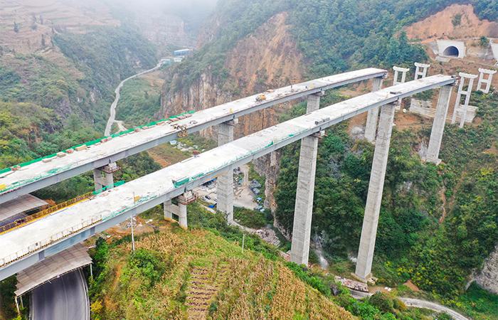 【工程概況】鎮(zhèn)果公路三分部五谷大橋左幅全長(zhǎng)345米,孔跨布置為:50+60+2×70+3×28.5米鋼混組合梁+預(yù)應(yīng)力混凝土T梁,先簡(jiǎn)支后連續(xù)結(jié)構(gòu);右幅全長(zhǎng)364米,孔跨布置為:60+3×70+3×28.5米鋼混組合梁+預(yù)應(yīng)力混凝土T梁,先簡(jiǎn)支后連續(xù)結(jié)構(gòu),最大墩高103米,為鎮(zhèn)果公路項(xiàng)目重點(diǎn)控制性工程。