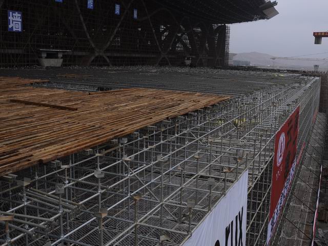 2010年11月12日,由公司工程管理部牽頭,聯(lián)合質安部和區(qū)域總監(jiān)等10人,到新機場工地,對樓前高架橋(F2-M橋)高支模進行檢查。F2-M橋共有三聯(lián),由我公司負責施工完成后與市政公司施工引橋部分閉合。F2-M橋高16m,單聯(lián)跨度144m,我公司首次大面積采用碗扣腳手架支撐體系,為了保證砼澆筑時的安全及質量,公司對現(xiàn)已搭設好的F2-M橋一、二聯(lián)進行高支模關鍵工序檢查,檢查組分別對項目外業(yè)及內業(yè)進行了仔細的檢查,及時發(fā)現(xiàn)搭設中的安全隱患及操作安全隱患,確保工程能夠保質、保量的完成節(jié)點工期。