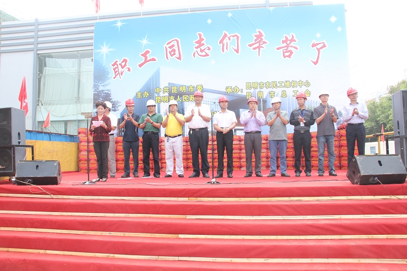 金桂飄香,中秋佳節(jié)即將來臨,昆明市工人文化宮遷建項(xiàng)目工地一片繁忙。8月29日上午,昆明市總工會(huì)主席戚永宏一行到工人文化宮遷建項(xiàng)目工地慰問,向建設(shè)者們表達(dá)了節(jié)日的問候和祝福。