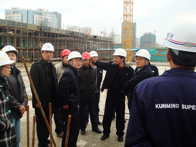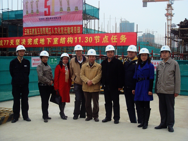 2010年11月27日中午,昆明市盤龍區(qū)區(qū)委書記劉云明率團到工地檢查工作,檢查期間劉云明對云南五建從復工后的工作給予肯定,并安排項目部做好充分準備工作迎接明年1月的昆明市建設工地情況檢查。
