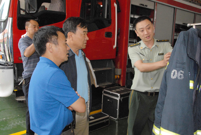 會后,大隊教導員李哲夫、中隊長刀云凌帶領公司領導及到會人員參觀了高新區(qū)消防大隊的救火設備和消防裝備,耐心講解了各種消防裝備的用途,并進行了演示,讓大家了解了很多消防知識。