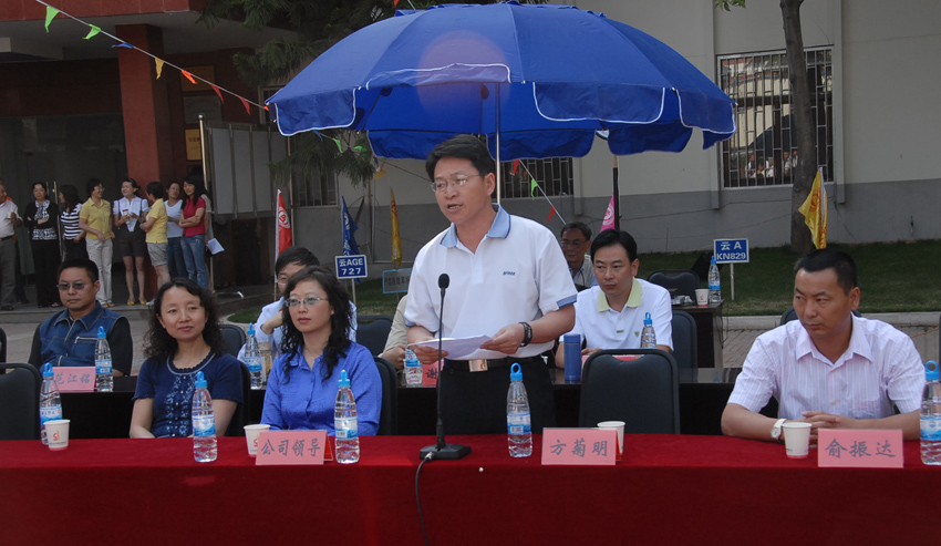 云南建工集團總公司黨委委員、黨委工作部部長陳發(fā)強,工會常務副主席楊金、黨委工作部副部長高辛尼,總公司機關黨委副書記戴紅梅,女工委員楊春霞等有關領導參加了開幕式,并作了熱情洋溢的致辭, 預祝五公司職工籃球運動會圓滿成功。公司董事長楊福和宣布運動會開幕,公司總經理方菊明致辭并為運動會開球。