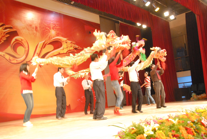 晚會在熱鬧的舞龍表演中開始,或優(yōu)美而感動的合唱《明天會更好》,或搞笑而有意義的小品《酒駕》、《招聘》、《交報表》,或充滿現(xiàn)代氣息的時裝秀、歌舞《恭喜發(fā)財》,或具有民族特色的舞蹈《七月火把節(jié)》、《西域風(fēng)情》,還有精彩的武術(shù)表演、舞臺劇《青春圓舞曲》、音樂劇《狼和羊的愛情》、合唱《大中國》,以及第五直管部友情表演的具有警示和教育意義的班前教育十分鐘。各個節(jié)目精彩紛呈,職工們既是演員又是觀眾,無不激情獻藝。