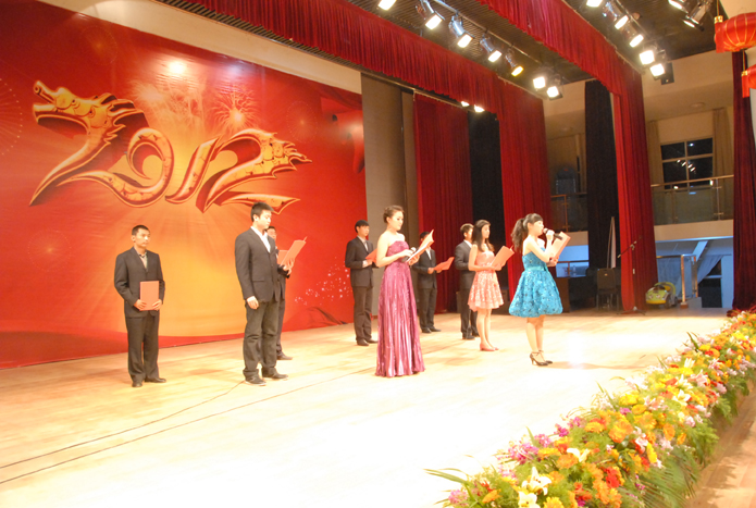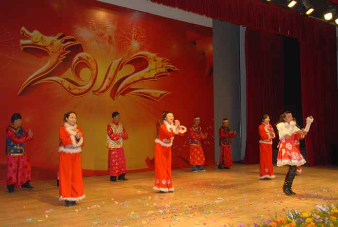 技術(shù)支持: 方森科技 春節(jié)臨近之際,為感謝機關(guān)廣大干部職工一年來的辛勤工作。2012年1月17日晚,機關(guān)黨支部在公司禮堂舉辦2012年迎新春晚會。公司領(lǐng)導(dǎo)班子成員集體為晚會獻藝詩朗誦及小合唱《美麗的草原》。公司黨委書記李文智為晚會致辭。