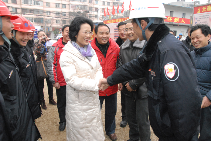 饒南湖一行還對公司文化宮遷建項目工地上的30余名青年農(nóng)民工和項目部青年突擊隊員代表進(jìn)行了慰問,向他們贈送了保暖羊絨被。