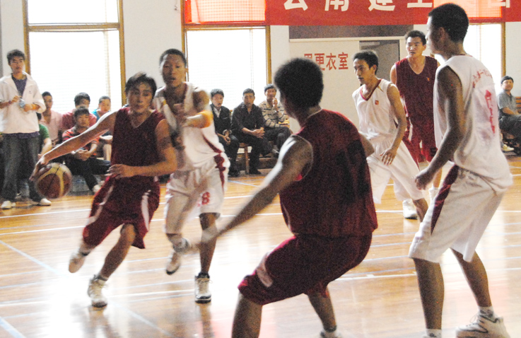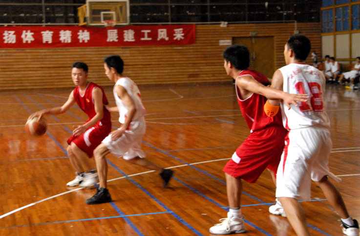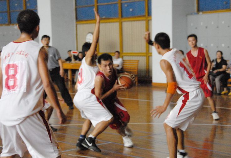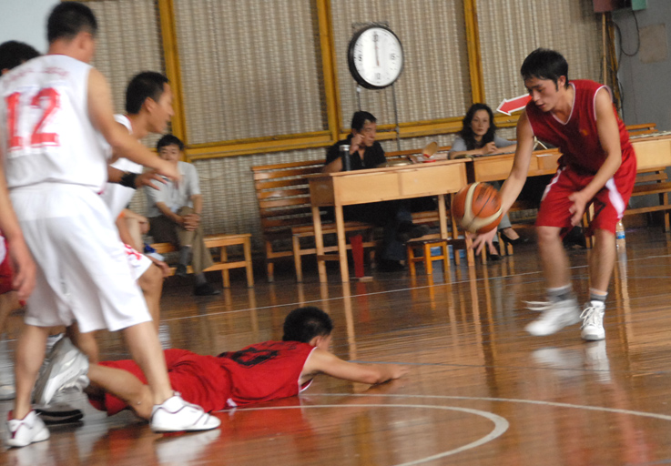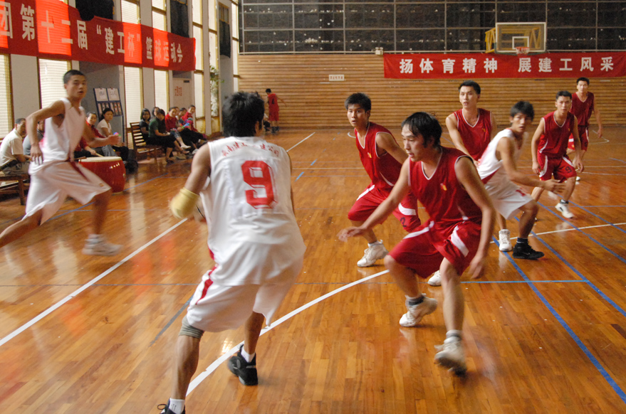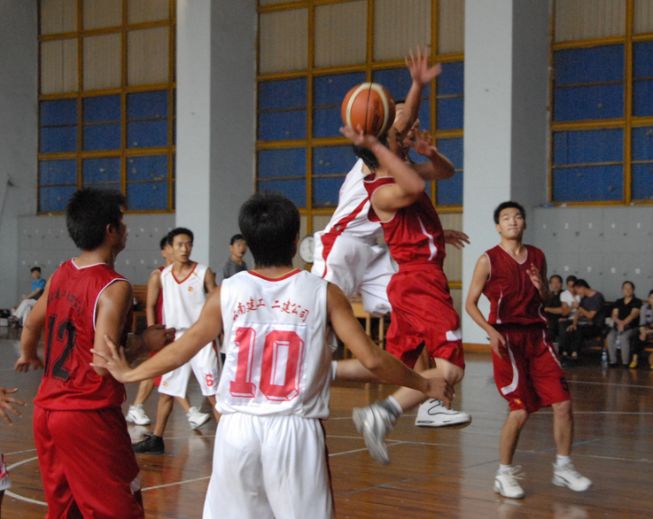 開賽后,他們同心協(xié)力,一度以17比9領(lǐng)先,逼對方換上了主力隊員。雖然此后形勢急轉(zhuǎn)直下,比分被對方反超,但五建上場隊員們?nèi)匀σ愿埃B強拼搏,絕不放棄. 對方由于有10多名隊員輪換,而五建上場的6名隊員基本無法輪換,可是直到終場,你從他們身上看不到一絲一毫的疲憊,看不到一丁一點的懈怠。雖然觀眾不多,雖然吶喊助威之聲稀少,雖然是到了體力極大消耗之后的下半場,他們依然保持高昂的斗志。無論前場后場,他們都步步緊逼,不放過一個機會、不放棄每個球權(quán),個個全力拼搏,人人都被汗水濕透了全身。雖說最終以幾分之差告負(fù),但是體育的精神,頑強的拼搏,被他們作出了實實在在的演繹。奉獻(xiàn)給觀眾的,是依然精彩的比賽。