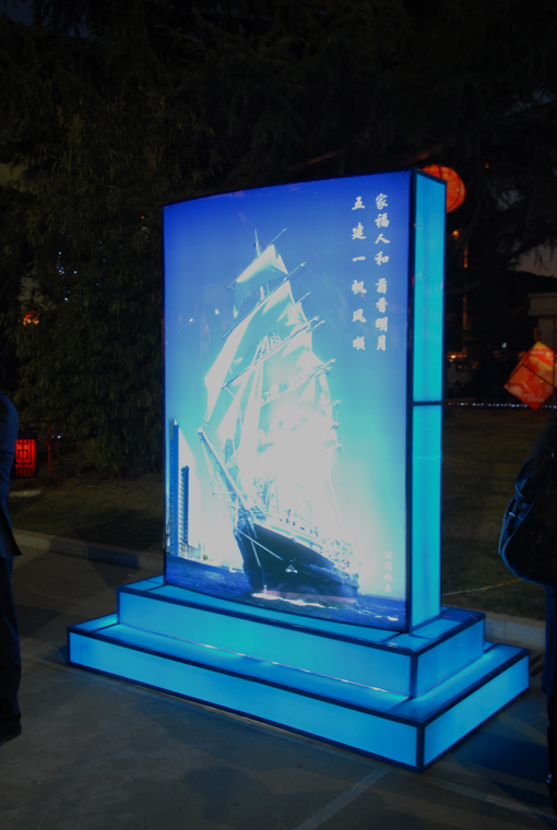 由基層各單位送來(lái)的參展作品異彩紛呈。最醒目的是主席臺(tái)旁的公司五大標(biāo)志性建筑燈箱,新機(jī)場(chǎng)項(xiàng)目的詩(shī)詞是機(jī)場(chǎng)項(xiàng)目部工會(huì)主席楊應(yīng)同志所寫(xiě)的《念奴嬌.新機(jī)場(chǎng)建設(shè)有感》,表現(xiàn)了奮斗在工地上職工們的朝氣蓬勃;506分公司作品是他們自行設(shè)計(jì)的圖案,開(kāi)頭是4,后面9個(gè)0,象征著公司今年要完成40個(gè)億的經(jīng)營(yíng)任務(wù);門(mén)上的兩個(gè)工藝精美的古典燈籠結(jié)合我們501分公司的一幢幢現(xiàn)代建筑,古樸中透著現(xiàn)代的氣息;第一個(gè)獲得魯班金像獎(jiǎng)的505直管項(xiàng)目部的送來(lái)的作品立體又質(zhì)感;海天一色中揚(yáng)帆的船寓意著家福人和,菊香明月,五建一帆風(fēng)順……各式各樣的彩燈都表達(dá)著對(duì)五建公司的美好祝福。兩個(gè)集體趣味項(xiàng)目超級(jí)大腳板和抬氣球,分別由新機(jī)場(chǎng)項(xiàng)目部、景秀西苑項(xiàng)目部、502直管項(xiàng)目部和507分公司派出的代表隊(duì)參加,團(tuán)隊(duì)的力量一目了然。民間藝人表演的《變臉》、《頂碗》和魔術(shù)《飛桌子》以及劃彩船、騎毛驢等傳統(tǒng)項(xiàng)目吸引了眾多的觀眾。燈謎區(qū)人頭攢動(dòng),同時(shí)進(jìn)行的還有元宵湯圓和冰糖葫蘆大贈(zèng)送;民間藝人現(xiàn)場(chǎng)表演了剪紙、草編、畫(huà)糖畫(huà)、捏面人等節(jié)目,他們的手工作品都現(xiàn)場(chǎng)免費(fèi)贈(zèng)送給大家。
