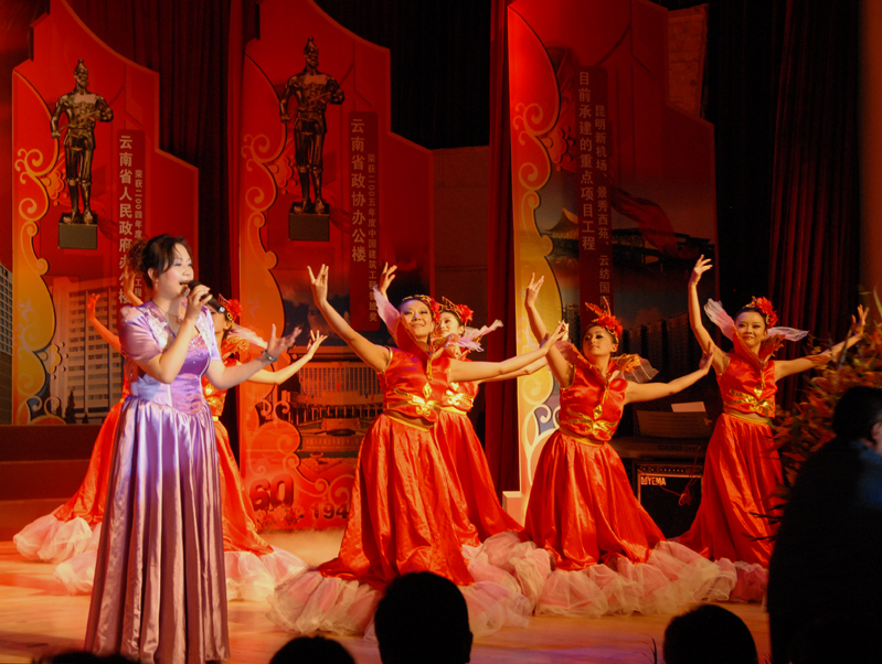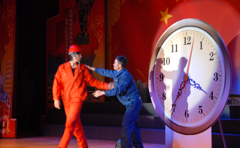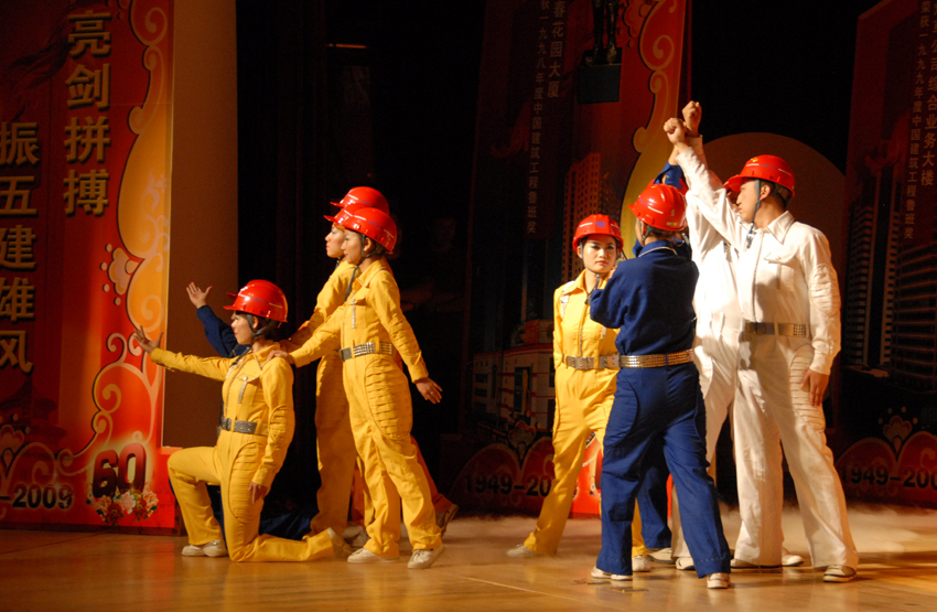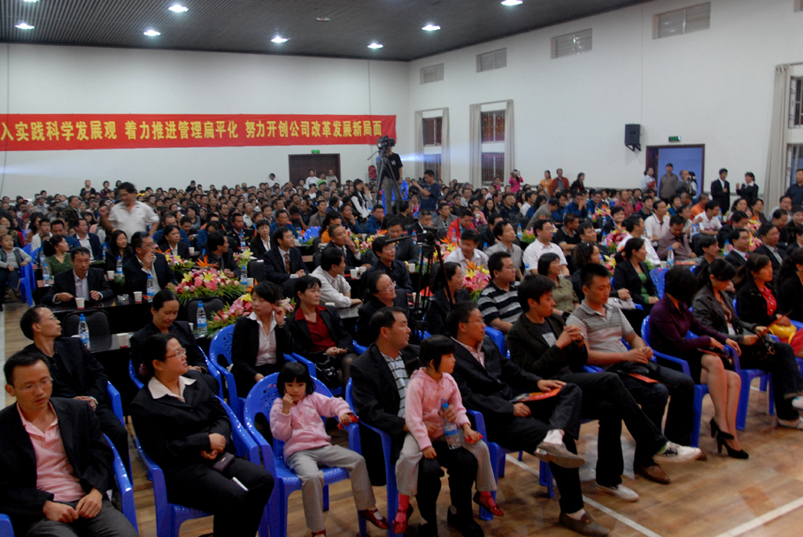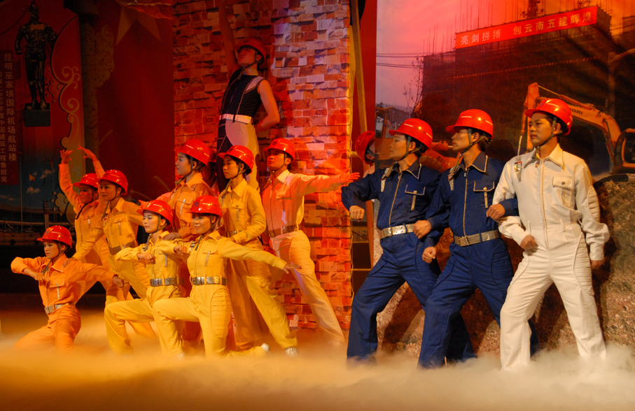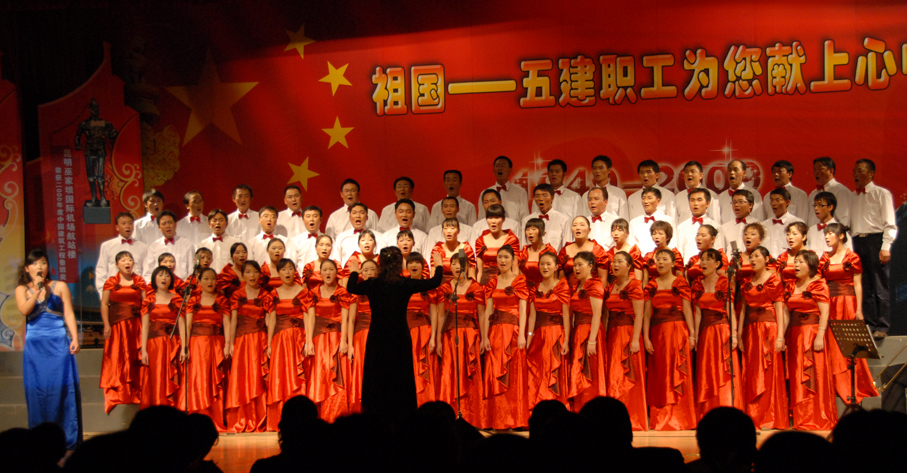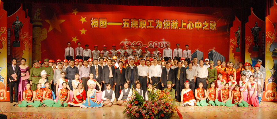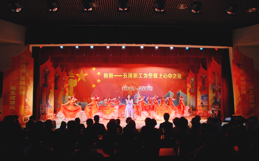 云南建工第五建設有限公司于9月28日晚在公司禮堂隆重舉辦以《祖國――五建職工為你獻上心中的歌》為主題的文藝晚會,慶祝中華人民共和國建立六十周年。來自公司和基層22個單位的700多 名職工,共演出了19個節(jié)目,以飽滿的熱情祝福偉大的社會主義祖國,用嘹亮的歌聲抒發(fā)對偉大祖國的熱愛,以昂揚的斗志表達實現(xiàn)公司跨越式發(fā)展的決心。云南建工集團總公司董事長、黨委書記納杰,副書記、紀委書記張戰(zhàn)國,工會主席陳文雙,集團前黨委書記張平濤等領導和來自集團內(nèi)外的嘉賓和五建干部職工一起觀看了演出,并和大家一起放聲合唱《歌唱祖國》。