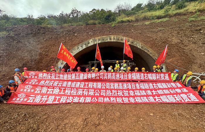 路橋五部賓鶴高速項(xiàng)目八工區(qū)幸福隧道右幅順利貫通