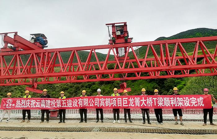 賓鶴高速八工區(qū)巨龍?bào)浯髽螂p幅梁板架設(shè)完成
