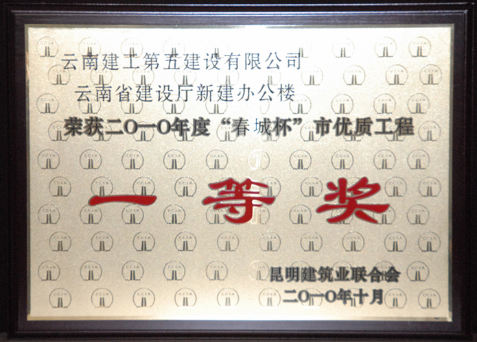 公司承建的云南省建設廳新建辦公樓榮獲2010年度“春城杯”市優(yōu)質工程一等獎