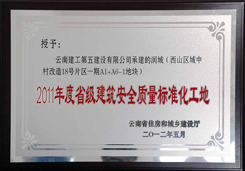 第五直管部承建施工的潤城(西山區(qū)城中村改造18號片區(qū)一期A1+A6-1地塊)工程獲“2011年度省級建筑安全質量標準化工地”稱號
