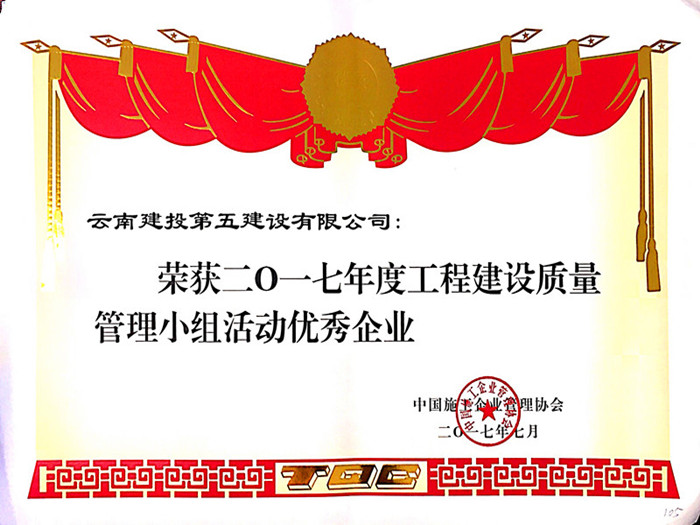 公司榮獲2017年度全國工程建設QC小組活動優(yōu)秀企業(yè)稱號